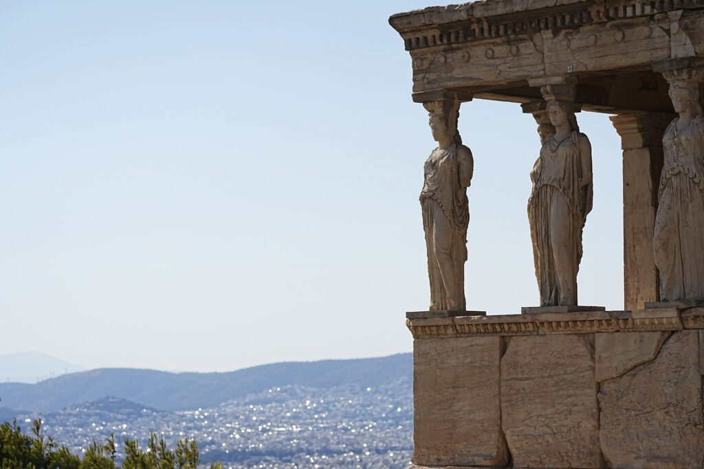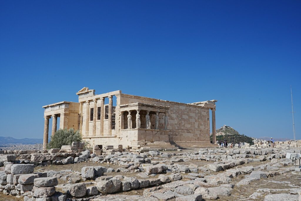 女性像が柱として建物を支える建築様式、カリアティード。実は、ここにあるものは全てレプリカで、本物はアクロポリス博物館(5体)と大英博物館(1体)にあるそうです。