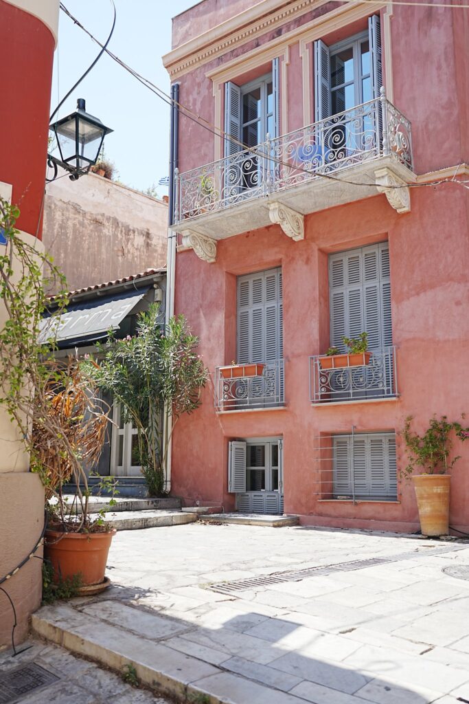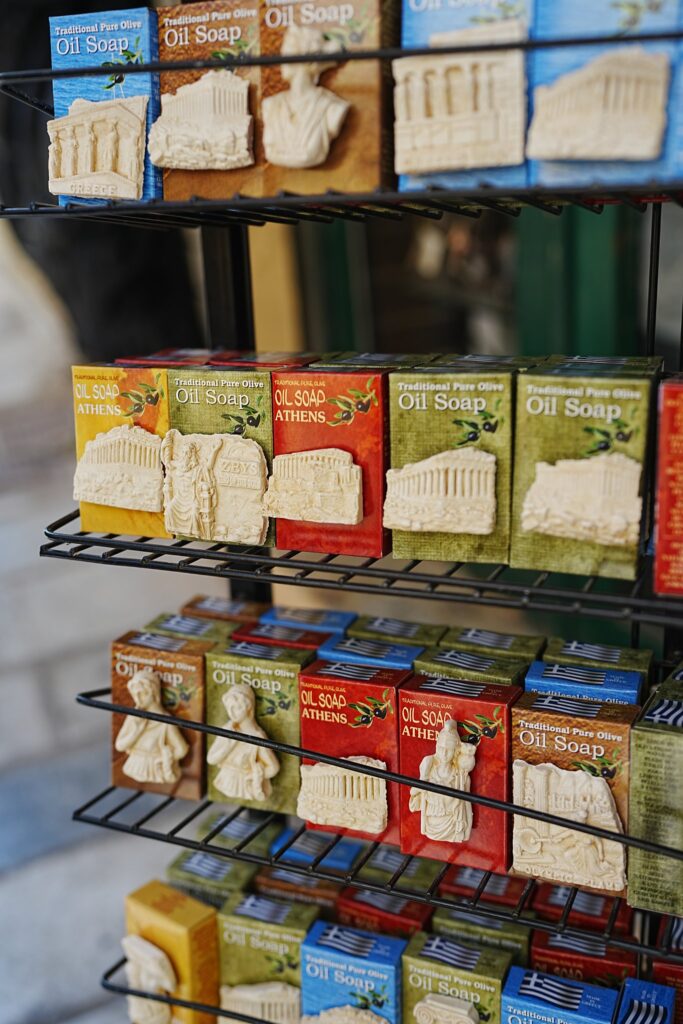 入場まで時間があったので、アクロポリス駅周辺を散策しました。カラフルな建物やおしゃれなお土産がたくさんあり、一気に「ヨーロッパに来たー!」という感覚に。