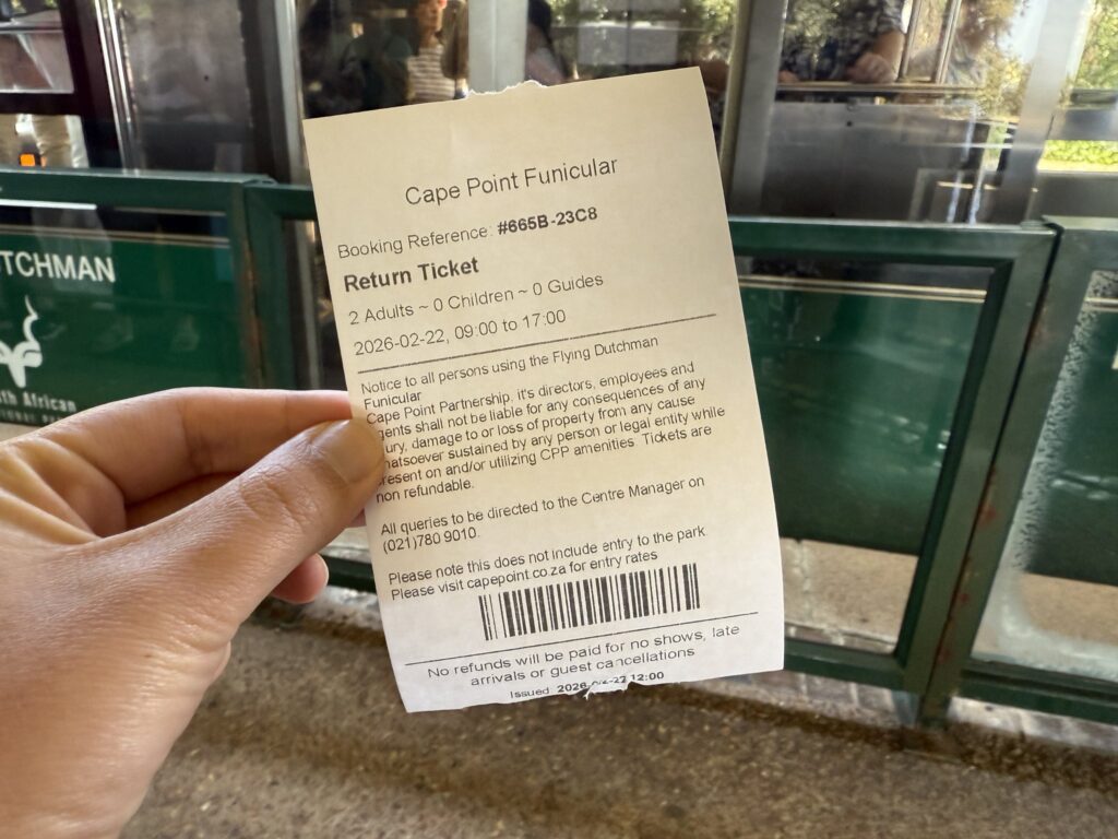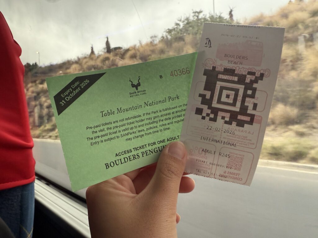バスの中で、テーブルマウンテンパークとボルダーズビーチの入場チケットが配られました。ボルダーズビーチ入場料はツアー代に含まれていないので、ここで支払います。(クレジットカードOK)