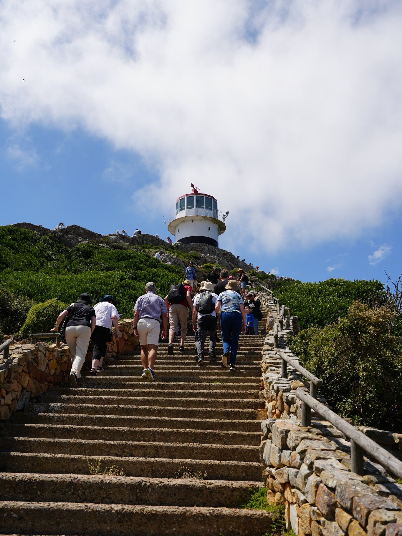 頂上まで登ってきました。ここには白い灯台があり、多くの観光客で賑わっています。