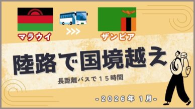ザンビア 【2026年最新】マラウイ(リロングウェ)からザンビア(ルサカ)へ長距離バスでの行き方 こんにちは。夫婦で旅をしているもえです。マラウイのリロングウェで過ごした後は、長距離バスでザンビアのルサカに向かいました。この記事では、チケットの購入方法や実際のバス移動の様子、国境越えの流れ、注意点... 2026.03.02 ザンビアマラウイ