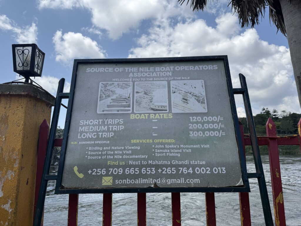 ジンジャでは、ナイル川の源流をボートで見に行くツアーが人気です。お手頃な値段であれば、私たちも参加してみたいと思っていました。