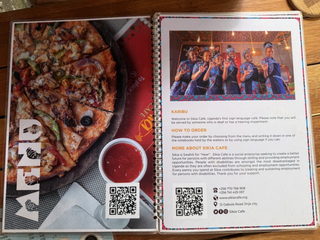 ここは、耳の聞こえないスタッフが中心となって働く、ウガンダ初の手話カフェです。私たちはそのことを知りませんでしたが、入った瞬間から笑顔で迎えてくれて、とても気持ちのよい接客でした。