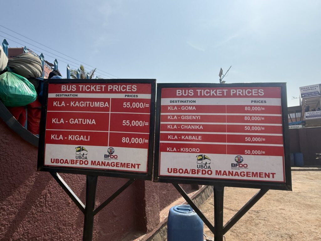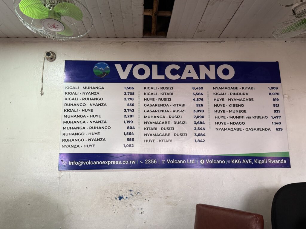 敷地内に入るとすぐに、チケットの値段が書かれていました。キガリ行きは一人80,000UShです。
