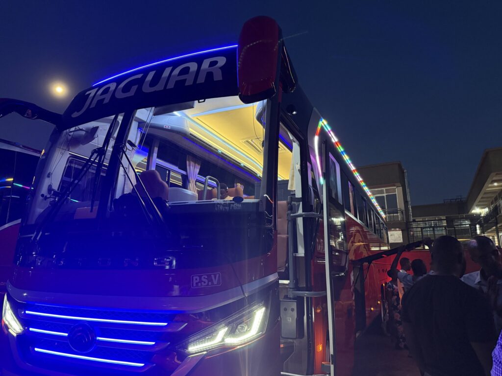 一つ目は、乗車時間についてです。私たちは、19:00(出発1時間前)に行ったでのすぐにバスに乗れましたが、その後は入り口で混雑して列ができていました。パスポート番号を書き留めるので、一人一人に時間がかかるようです。早めの乗車をおすすめします。