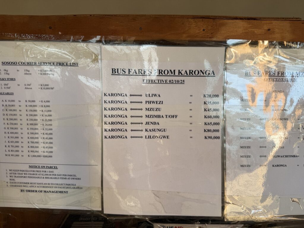 ガソリン代の高騰により、交通費が大幅に値上げされたそうです。マラウイ国内の物価は、全体的にかなり高めでした。