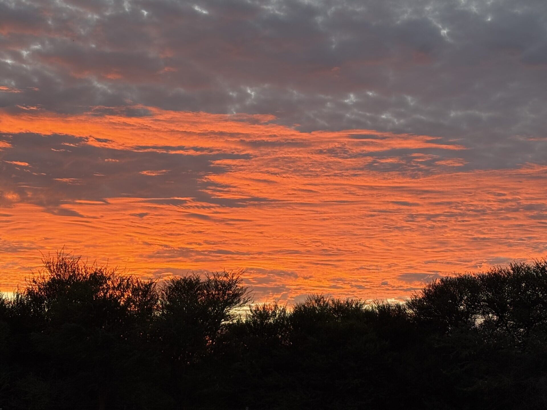 早朝の歩行タイム。疲れ切っていましたが、朝焼けが美しかったので許します。(朝焼けに感動してるのアジア人だけ)