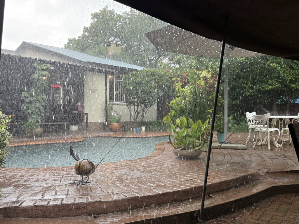 途中大雨になってしまい、しばらく雨宿りさせてもらいました。このように急に大雨になることがあるので、雨季のアフリカ旅はなかなか大変です。