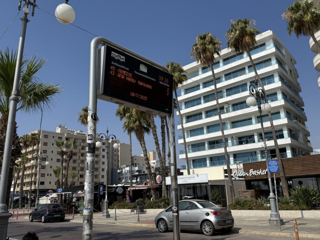 バス乗り場にはこのような電光掲示板があるので、次のバスが来る時間を確認することができて便利でした。