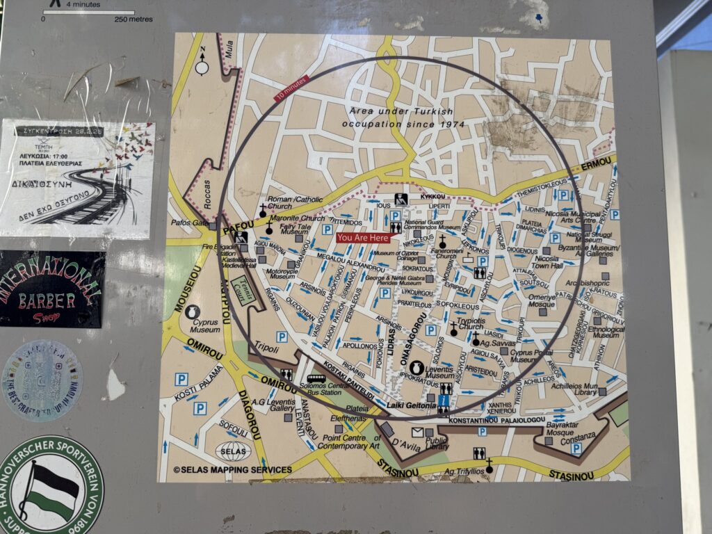 実は、ニコシアは首都でありながら、ギリシャ側の「南キプロス」とトルコ側の「北キプロス」に分断されています。