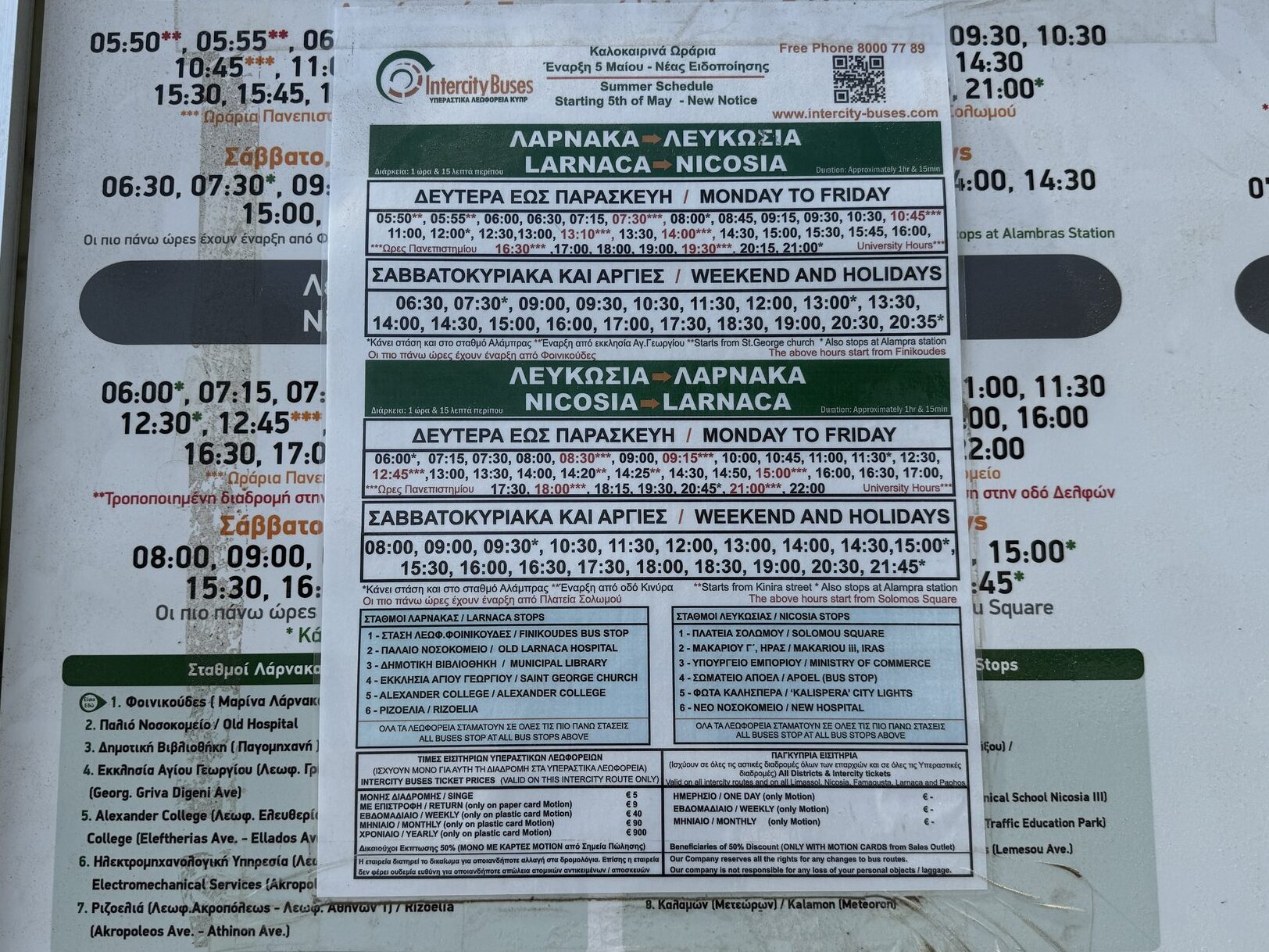 ラルナカからニコシアは、Intercityバスというキプロス内の都市間を走るバスで行くことができます。