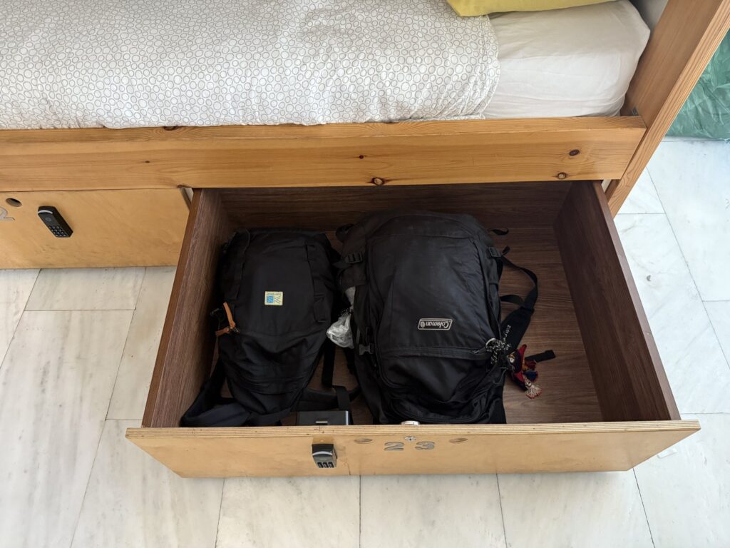 バックパックがすっぽり入る収納はありがたいです。鍵付きなので安心です。