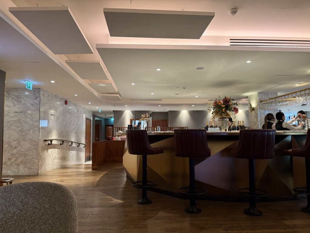 空港内にある特別な休憩スペースのこと。普通の待合スペースより快適で、飲み物や軽食、Wi-Fi、雑誌、静かな席などが用意されていることが多い。