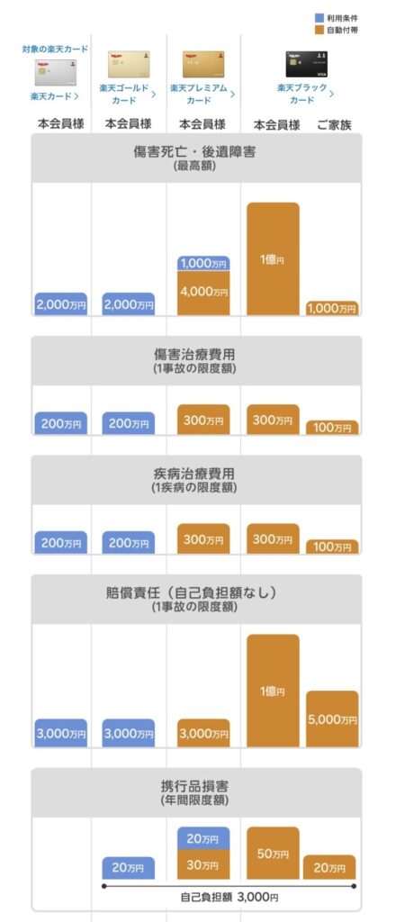 楽天カードには主に以下の3種類があり、補償内容はカードのランクによって異なります。