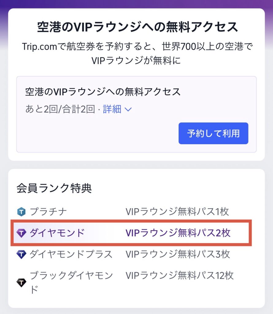 私たちは、航空券の予約にはTrip.comを使っています。会員のステージに応じてラウンジ無料券がもらえるので、これもお得です。