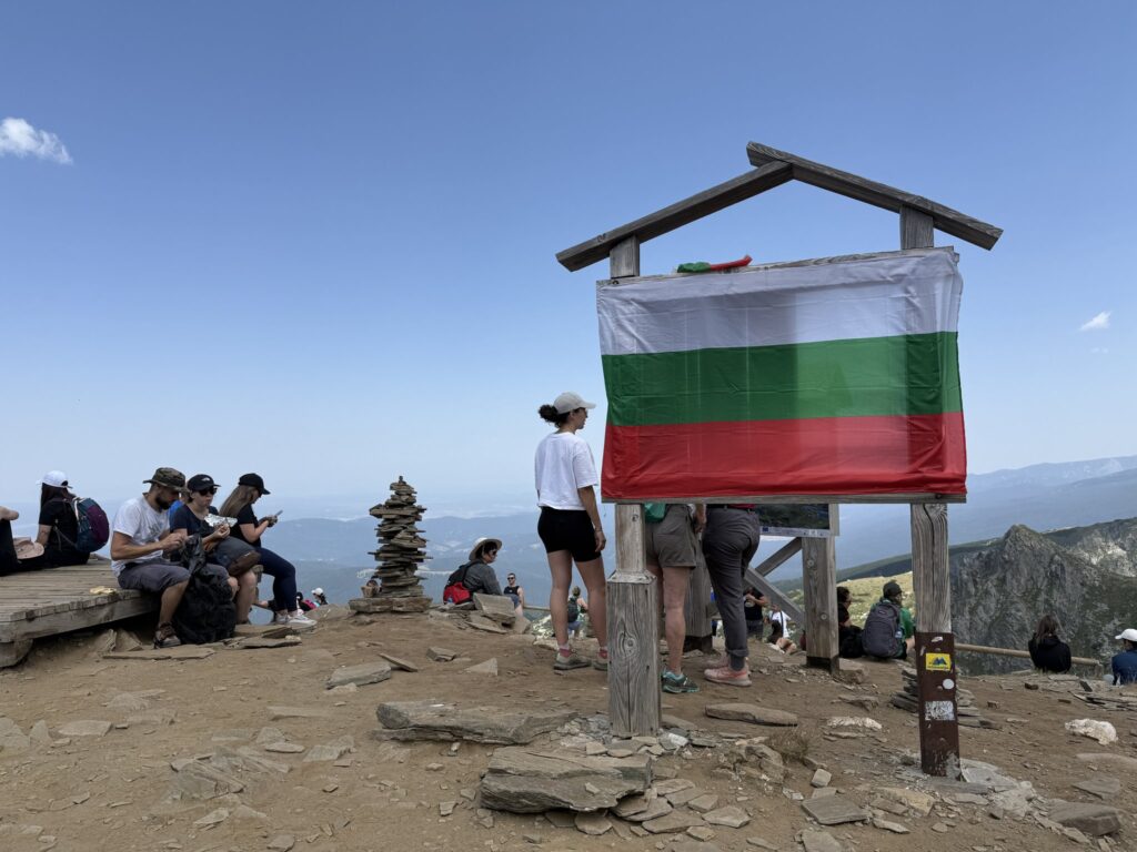 ついに、目指していたポイントに到着しました。ブルガリア国旗が掲げられていて、多くの人が休憩したり写真を撮ったりしていました。