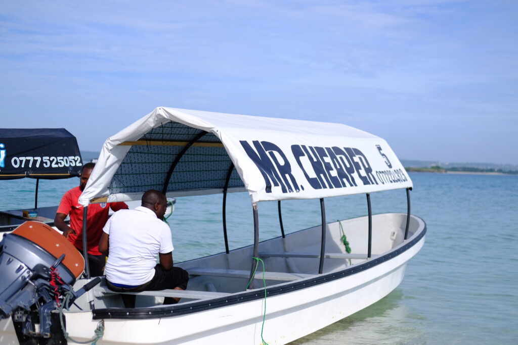 浜辺にはたくさんのボートがあるので、値段を比較したり交渉したりしてボートを選びました。スピードボートなら、片道10分ほどで行くことができます。