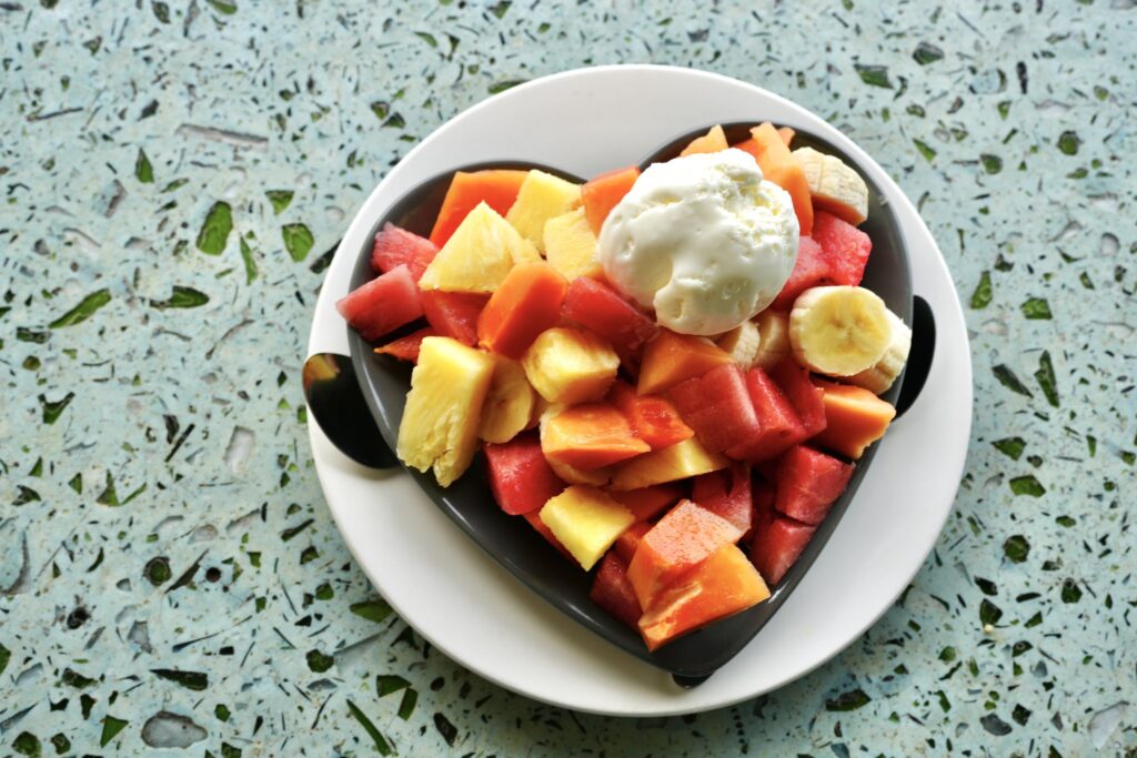 Fruit Salad with Ice cream 8,000TSh(約480円)