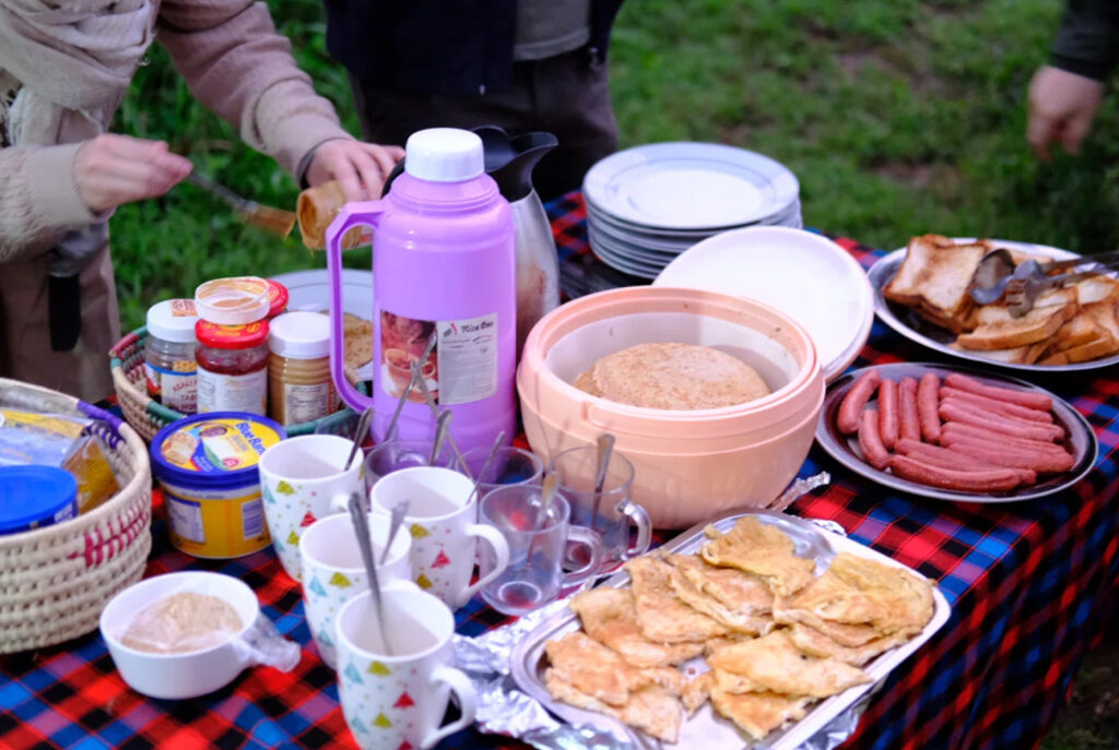 明日は朝6時にはキャンプサイトを出るから、朝食は5時半からね。(早い)