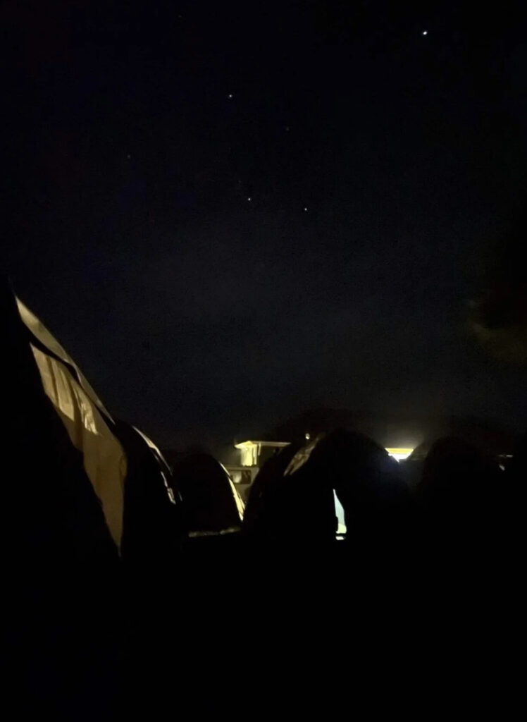 この時、既に辺りは暗くなっていました。テントの設営と料理はツアーのスタッフさんがしてくれるのでありがたかったです。