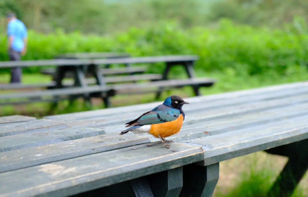 朝ごはんが終わってから、ガイドさんや料理担当のスタッフさんが片付けをしてくれました。待つ時間があったので、そこで身支度をしている人が多かったです。私は、ひたすらキャンプ場にいた鳥を追って撮っていました。