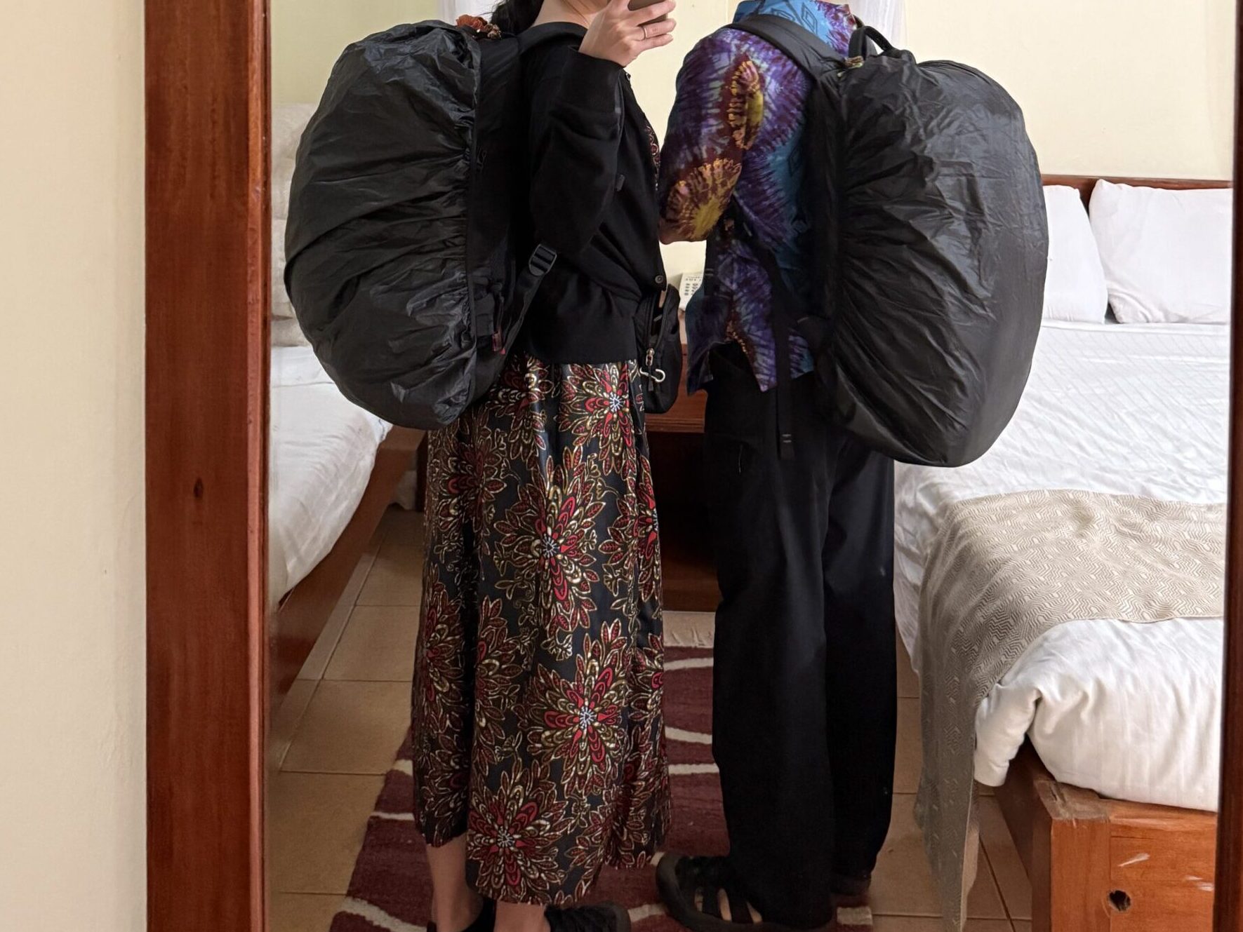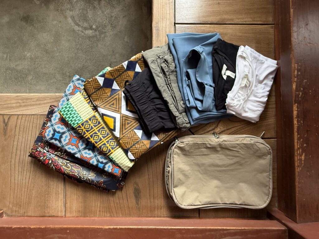 また、今回はアフリカメインですが、中央アジアでもヨーロッパでも中身はほぼ変わりません。基本は夏の国へ行くスタイルですが、北欧の12℃くらいまではこの荷物で耐えられました。※極寒は無理です。