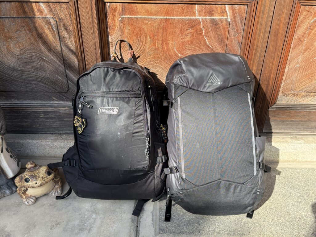 メインのバックパックは、かれこれ5年くらいずっとコールマンのウォーカー33を使っています。これの1番の魅力は、約700gという本体の軽さです。荷物を少しでも軽くしたいバックパッカーの味方です。かなり古くなったので買い替えを検討することもありますが、他のものは1kgを超えるバックパックが多いので、どうしてもこれに落ち着いてしいます。