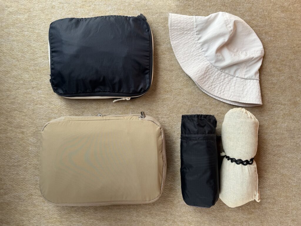 薄くてかさばらない服を集めているからという理由もありますが、新調した圧縮バッグもかなり優秀です。
