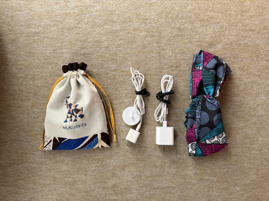 旅に必須のモバイルバッテリーは、機能性を重視しています。これ一つフル充電にすると、スマホ2回分くらいは充電できます。