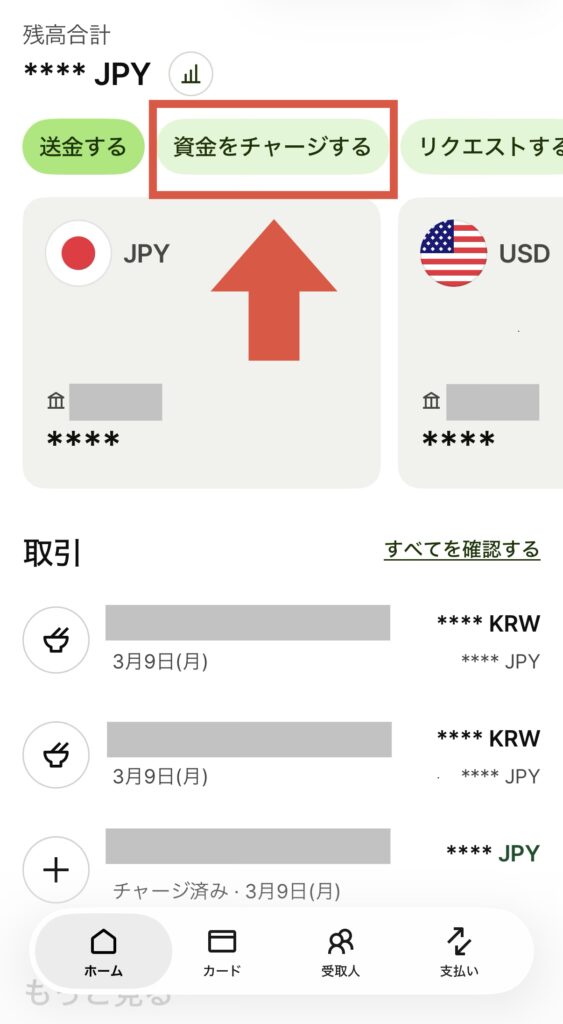 次に、Wiseのアカウントにお金をチャージする方法をご紹介します。