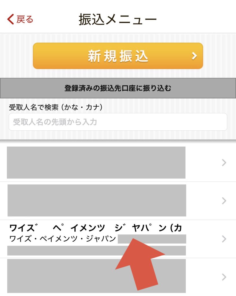 2度目以降の振込は、このように登録されたものを選択するだけでOKです。