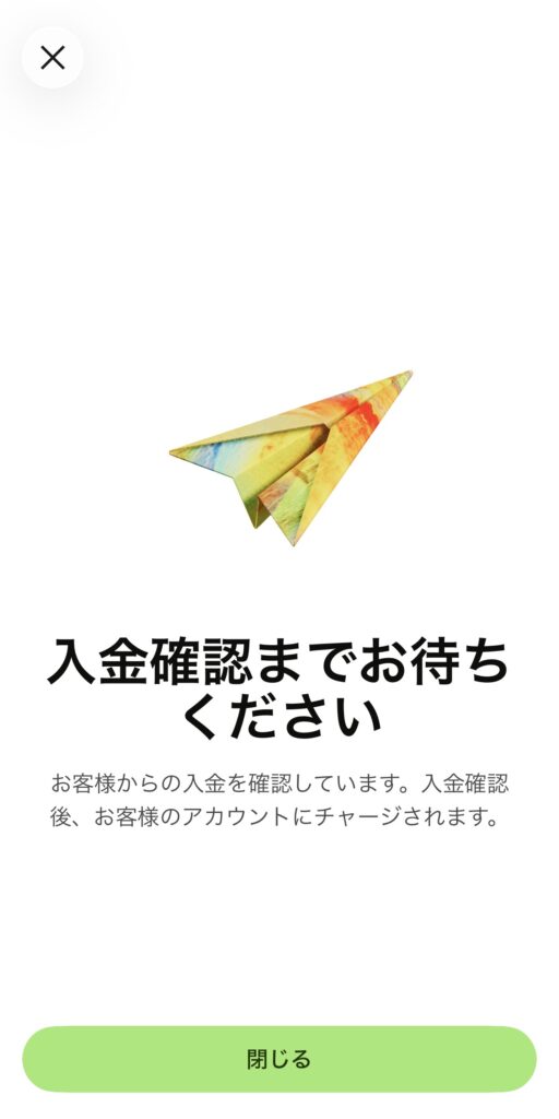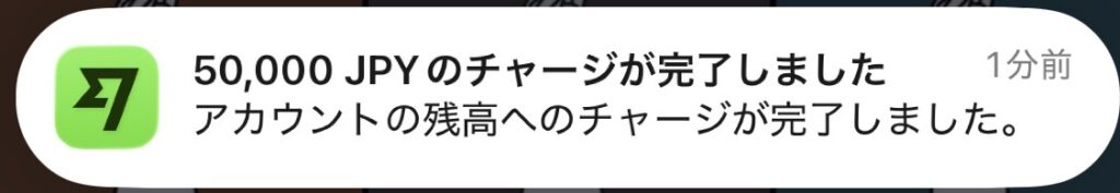 「入金を確認しています」が「チャージ済み」に変わりました。これでチャージができました。