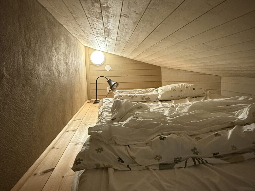 寝床はロフトの上のここです。少し天井が狭いですが、問題ありませんでした。